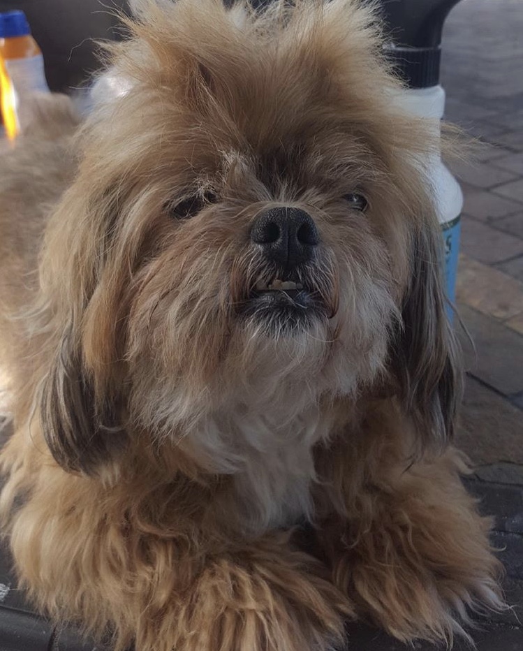 Yes! Lola is my fur baby. She is a brown and white 13-year old Shih-Tzu/Pekingese and weighs about 10 pounds. She is small but feisty. She loves to cuddle with her Mom and Dad, loves snacks, and in her older years sleeps a lot. I don’t have any human kids, so she is quite spoiled and loved dearly.